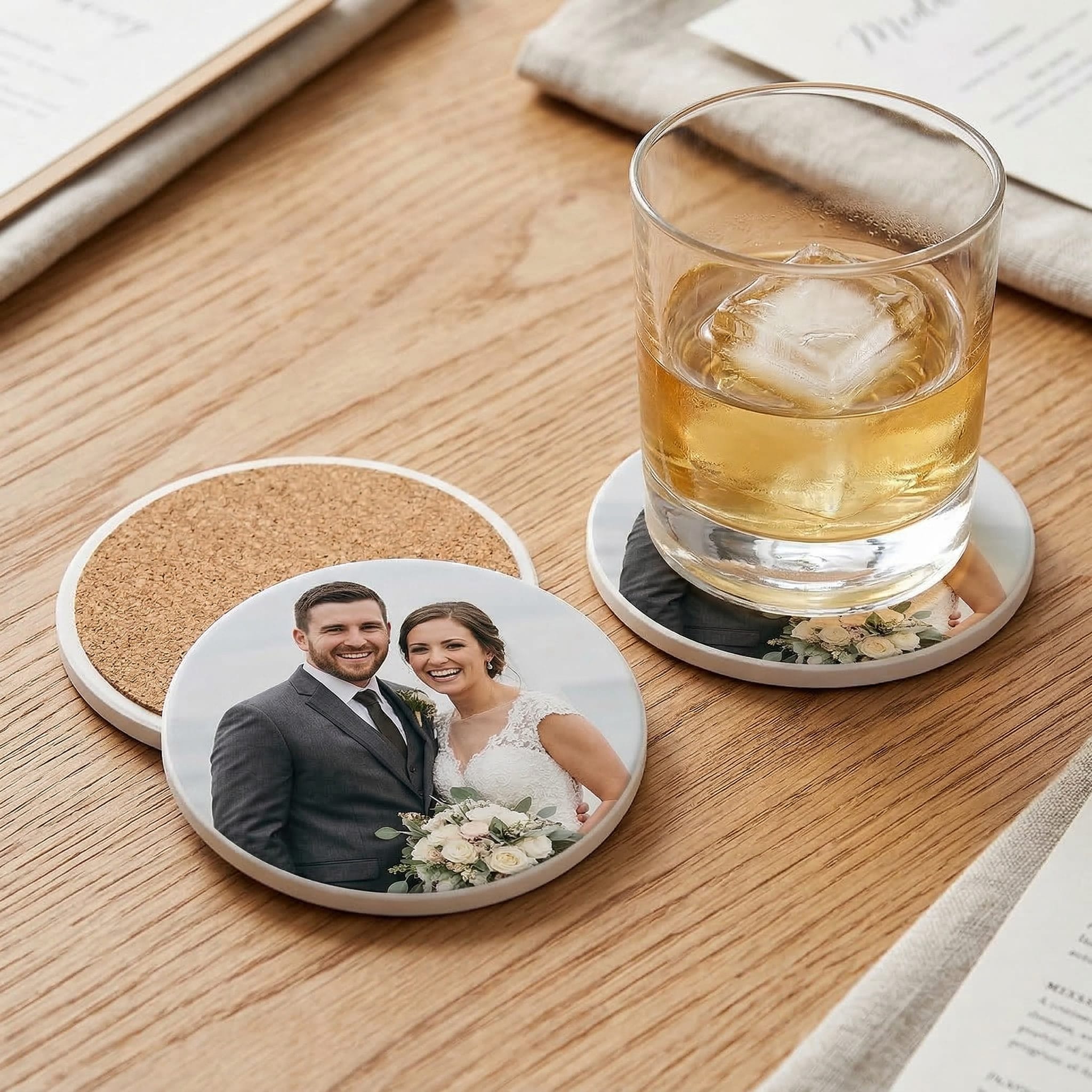 Mit diesem Keramikuntersetzer mit Foto und Text personalisiert hältst du besondere Erinnerungen direkt auf dem Tisch fest. Ob als Hochzeitsgeschenk, zum Jahrestag oder mit einem liebevollen Spruch – dein persönliches Foto macht jeden Untersetzer einzigartig.