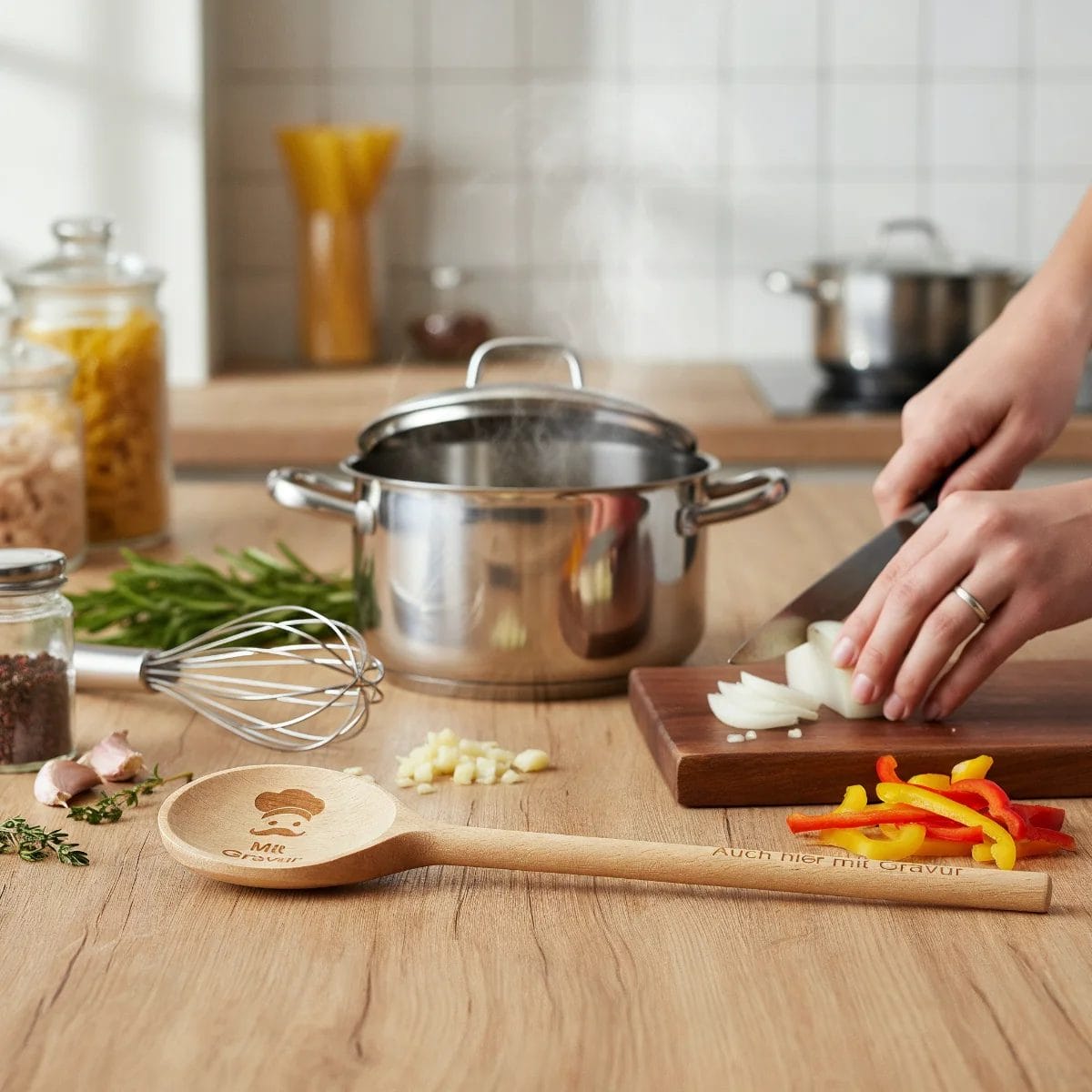Ob beim Kochen, Braten oder Backen – dieser gravierte Holzlöffel ist vielseitig einsetzbar und bringt natürliche Wärme in deine Küche. Und dank der persönlichen Gravur wird er zum echten Hingucker oder zum liebevollen Geschenk für Hobbyköchinnen und -köche.