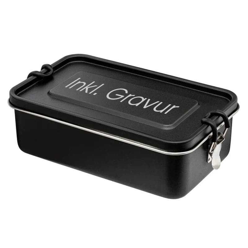 Mit der personalisierbaren Lunchbox „Lunchbreak“ aus pulverbeschichtetem Edelstahl bist du perfekt für den Alltag gerüstet – ob im Büro, beim Picknick oder unterwegs. Die edle schwarze Oberfläche sorgt für einen modernen Look, der ebenso dezent wie hochwertig wirkt.